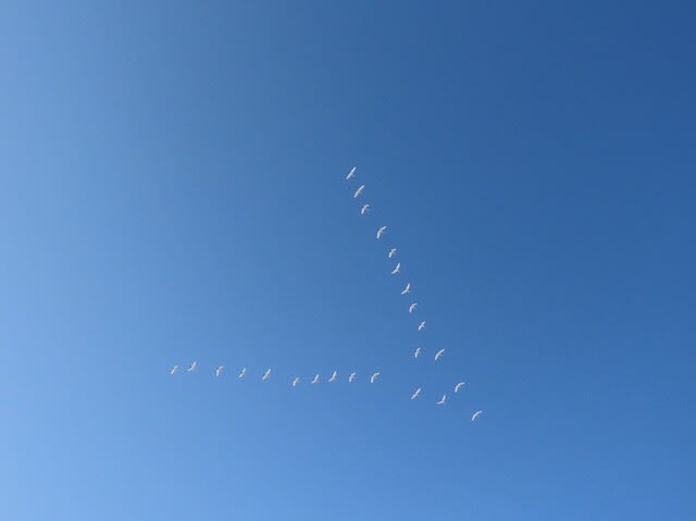 青い空に隊をなして飛ぶ白鳥も春を感じる景色です。