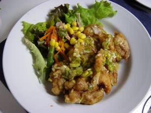 シャキシャキしておいしかったですが、一番下においたブロッコリーはドレッシングに漬かり過ぎて辛かったです。^^;