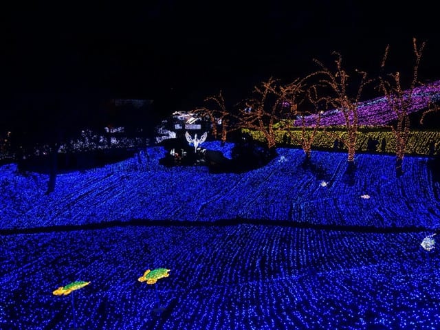 海のように青いイルミです。カメやクラゲのイルミも泳いでいます。