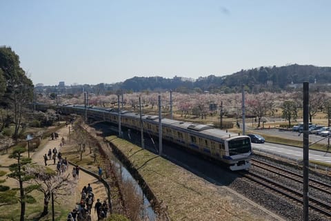 梅林とあわせて電車も撮ってみました。