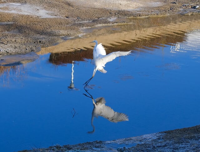 サギが川に降りるところ。