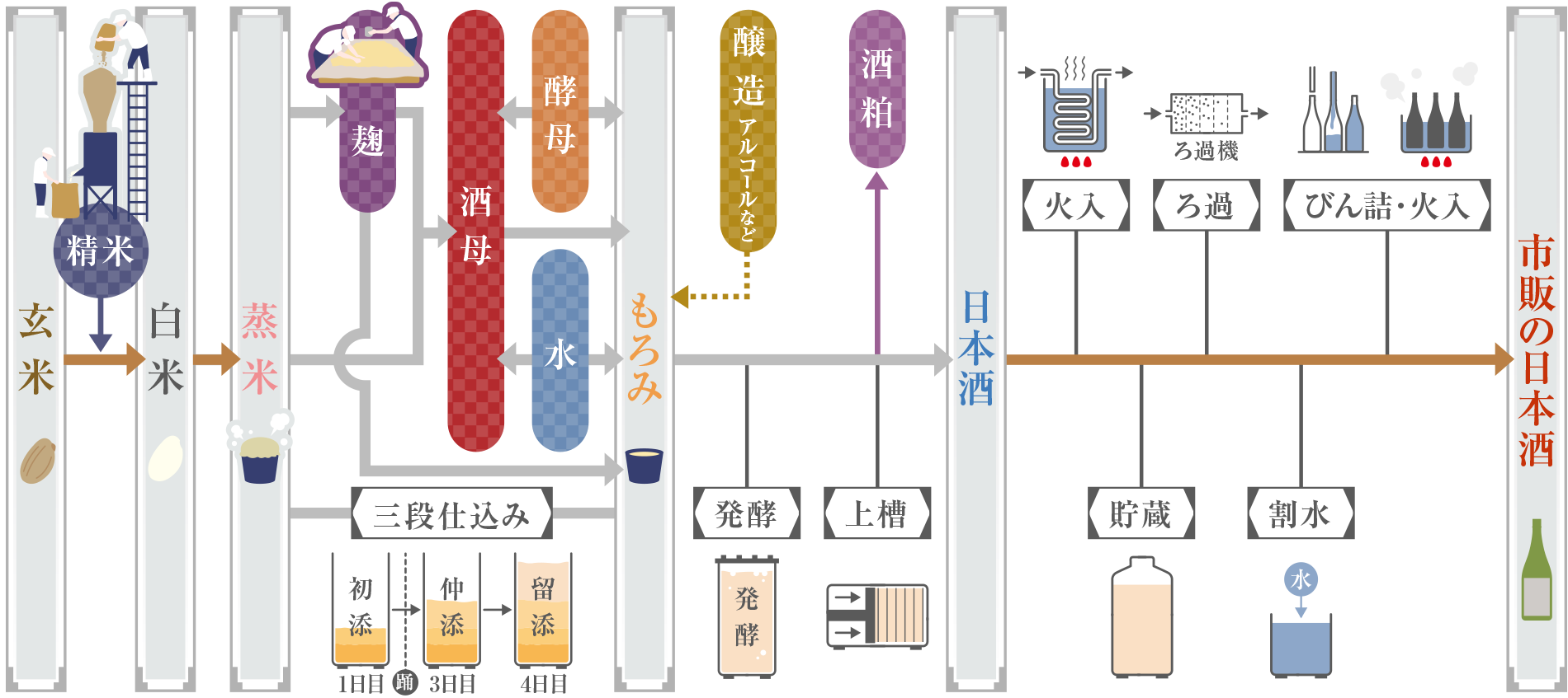 引用元:日本酒の製造工程 - 日本酒 |日本酒造組合中央会 | JSS
