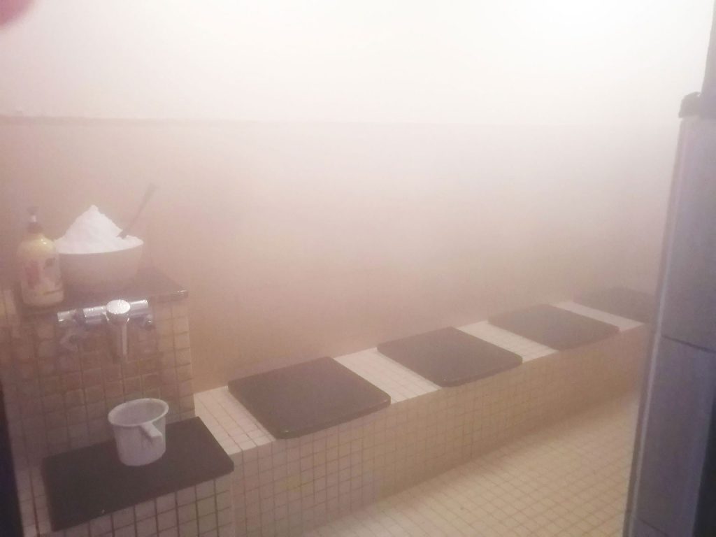 蒸気で満たされた室内で、