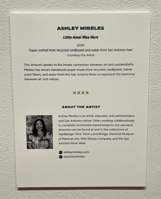 The common denominator throughout her varied work is an all-in focus on nature and the complex ecological issues surrounding nature. The exhibit at Palo Alto, “Herbal Traces: Medicinal Plants of South-Central Texas,” highlights the healing properties our regional flora and the importance of their preservation. Be sure to pick up an exhibit flier, where the medicinal properties of each plant are highlighted.
