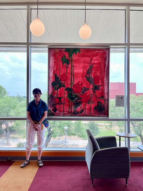 New work by Sabra Booth, an award-winning Alamo City artist, is currently on display at Palo Alto College‘s Ozuna Learning Center (second floor) through August 9, 2024.
