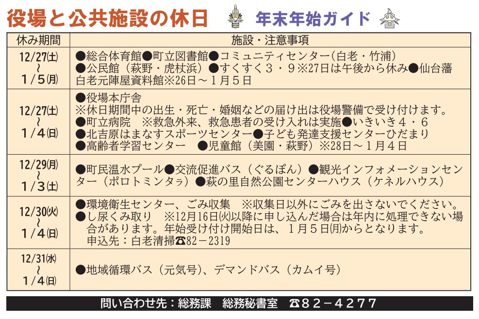 センターハウスの年末年始の休館日をお知らせします。