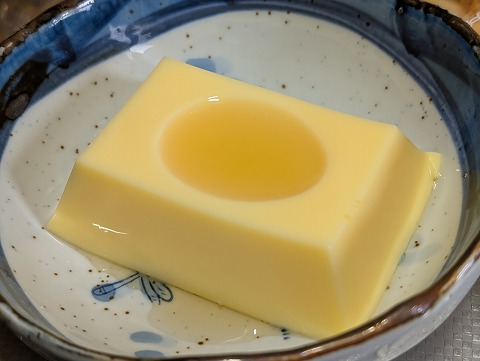 この卵豆腐、ちょっと出汁がついているタイプなのですが、
