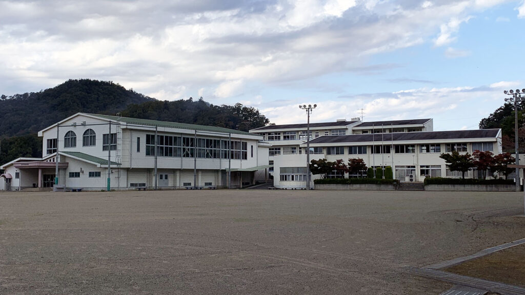 買い出し気分を味わったあとは、タクシーで「旧下部小・中学校跡」へ。アニメの背景にもなった校舎を遠巻きに眺めるだけでも、作品の空気を感じ取れます。地元の山あいにひっそりと佇むその姿は、どこか懐かしくて心に残る風景。