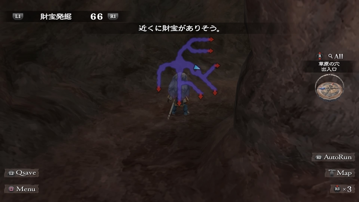 ロマンシングサガミンストレルソングリマスター【PS4版】 グレイマラソンで溜まった地図を利用し、財宝発掘作業に入る。50枚以上あるか。グレイ所持地図の発掘現場は固定。洞窟の入り口から近いため、吟味がしやすい。