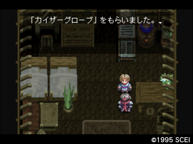 カイザーグローブ。雪山に向かう前に母親に話しかけると貰える。ここ限定アイテム。アークザラッドモンスターゲームがあれば、楽に増産できるらしい。