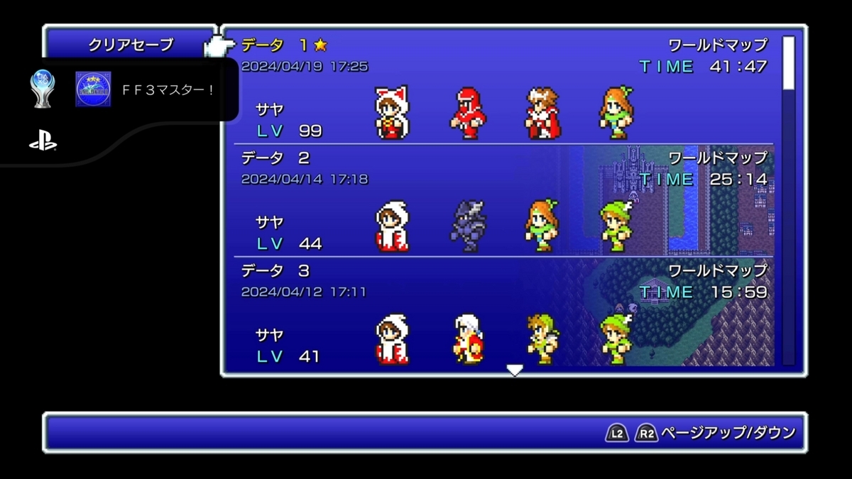 プラチナトロフィーは、114個目。クリアデータには、クリアの証として、データ横に星マークが付く。