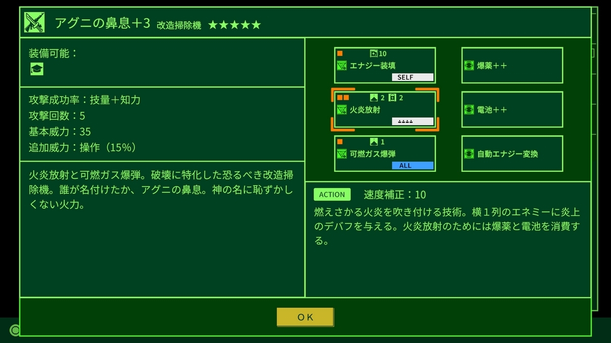 多分まだまだレア度5の武具はあると思うが、このゲームのプレイはここまでとする。最後にやりこみデータ(自分なりの)、レアアイテム収集映像とレベルカンストしたキャラのステータス紹介とレア度5のアイテム紹介映像を載せることに。