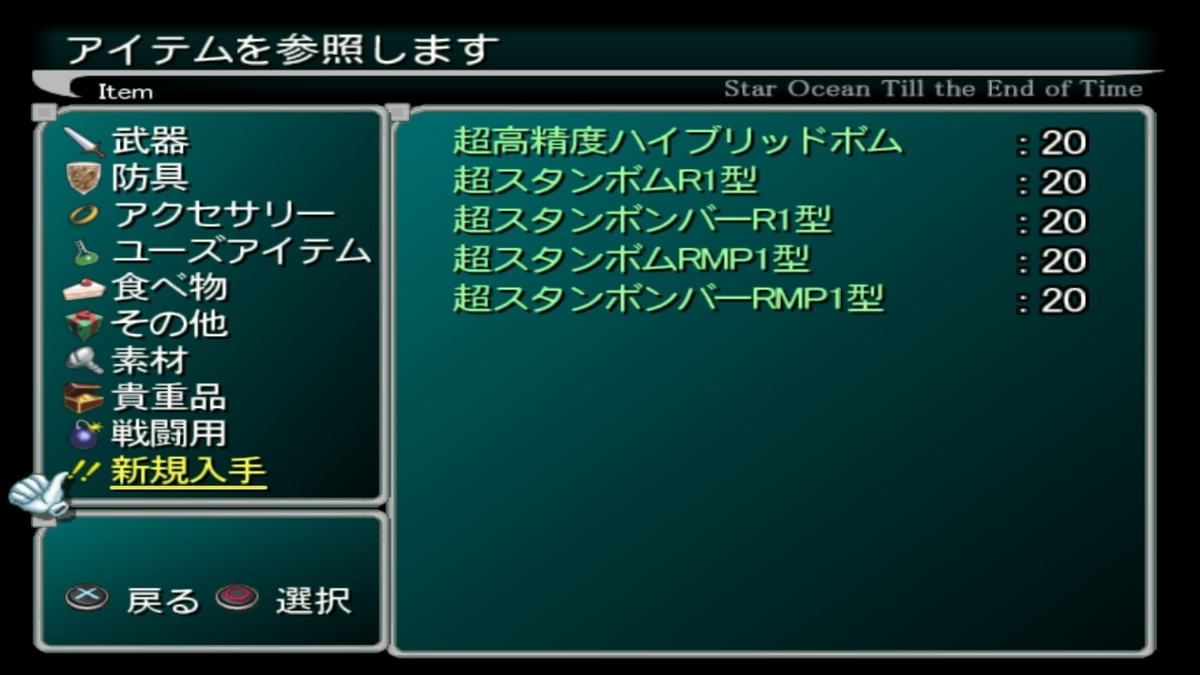 スターオーシャン3 2周目(ユニバース)スタン系爆弾を大量に作成する。フレイやフェイト戦のために。
