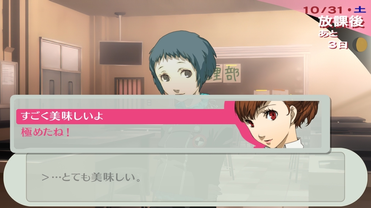 恋愛コミュコンプ。ゆかりの部屋に初めて入る。編みぐるみを貰う。つらい時はそのぬいぐるみによく話しかけて、精神を安定させていた。もう、過去の幸せな思い出に逃げることを止めたため、そのぬいぐるみをサヤに渡す。