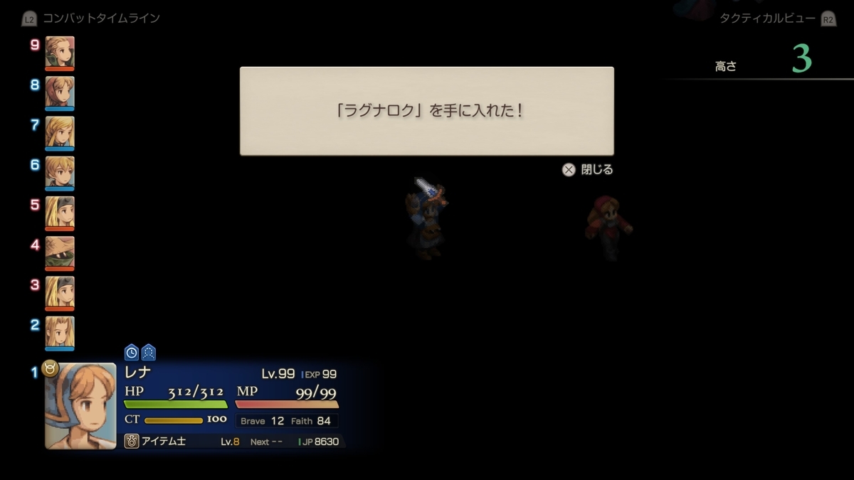 なんどもエンドで戦闘を繰り返し、プレイアブルキャラ全員にゾディアークをラーニングさせる。これでプレイアブルキャラ全員、全ジョブをマスターする。