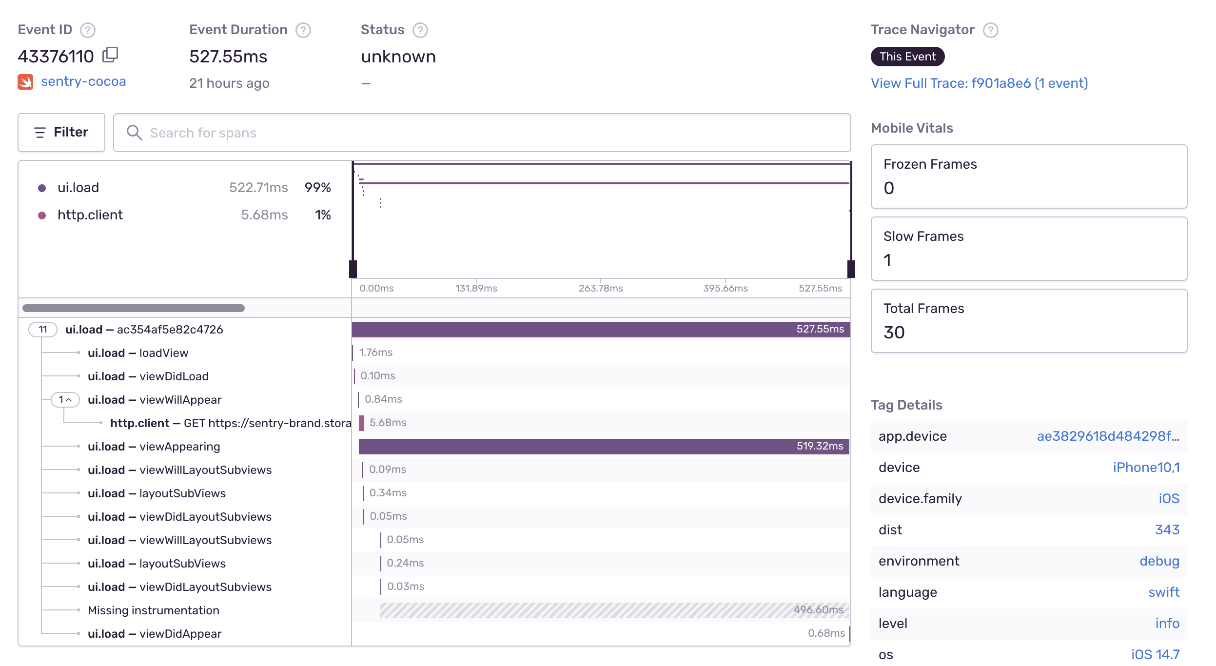 Stop querying log files to troubleshoot performance issues. Use Sentry Tracing to quickly identify errors and latency problems by tracing from your frontend through all your services to see the exact poor-performing API call or slow database query.