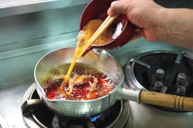 市販のつゆは手軽だが、よりおいしく仕立てるにはつゆづくりに挑戦したい。つゆは、“かえし”に鰹節や鯖節から取っただしを加えてつくる。かえしとは醬油、本みりん、砂糖を混ぜた調味料で江戸時代に誕生。その名は「つくっておいた醬油を煮返した」ことに由来する。かえしは店の味の決め手であり、代々受け継がれる大切なものだが、家庭でも試せるようなレシピを教わる。ちなみに『神田まつや』では冷たい蕎麦に使うつゆは「辛汁」、温かい蕎麦に使うつゆは「甘汁」と呼ぶ。