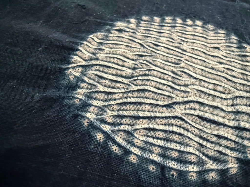 Guntai shibori moons for the February moon circle as a Pisces birthday approaches this month.