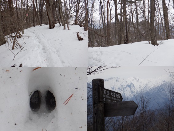 積雪は70センチ程度か、助かったことは自分達より先行している踏み跡があった事だった。トレースの有無は雪山で消費する体力に大きな差が出る。ありがたく先人の足跡をたどった。