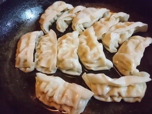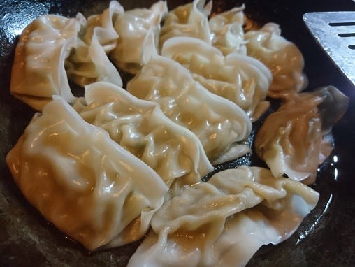 皮はふにゃりと柔らかめだが、そこはかとなくスパイシィな、このぎょうざ。