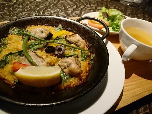 そのエキスが沁みだしたパエリアは、おこげのカリッと感も素晴らしく、その価格以上の贅沢感あふれるランチタイム🥘