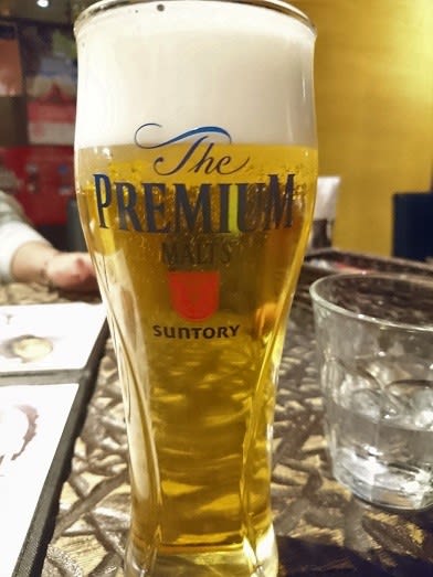 オーダーしていた「プレミアムモルツ」が運ばれてくるとほぼ同時に、妻が入店した🍺