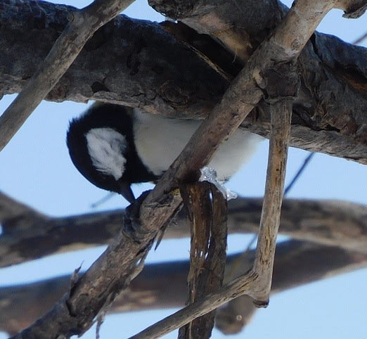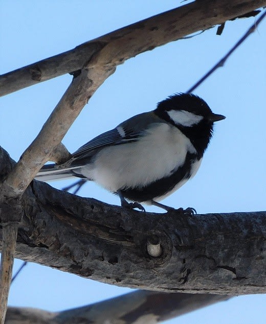 定番野鳥の「シジュウカラ」さんは、しきりに木をつつき、なにやら採食中でありました。