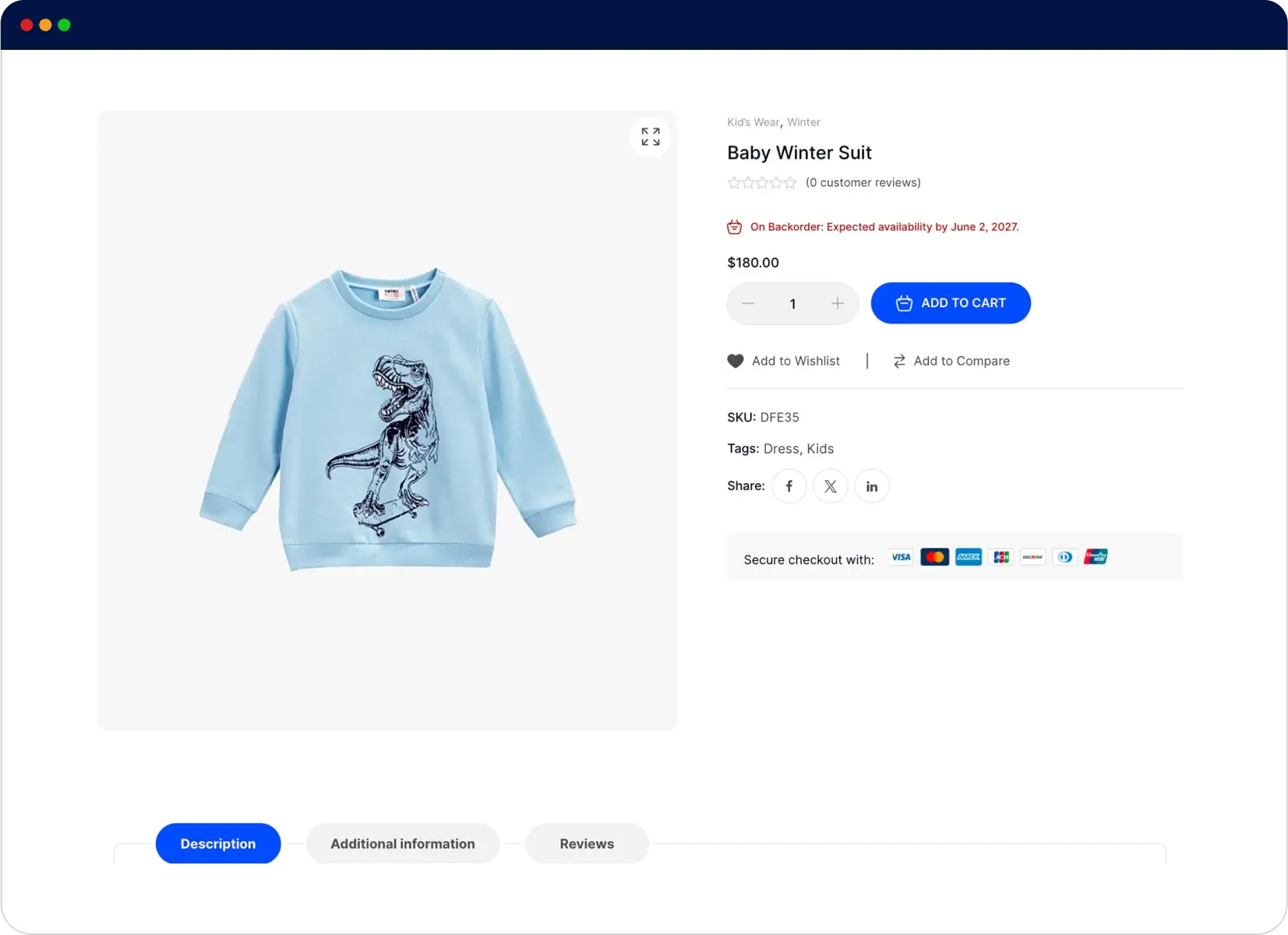 Showcase back-order notification on product page. Convert inventory challenges into sales opportunities. You can also include the expected delivery date. This will assist users in making buying decisions without any confusion.