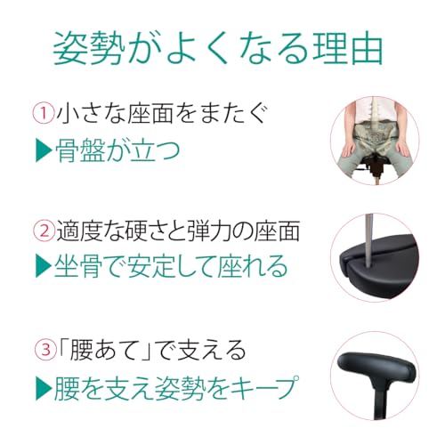 背もたれがなく、代わりに坐骨(骨盤)を支えるサポートによって正しい姿勢をキープする仕組みになっています。
