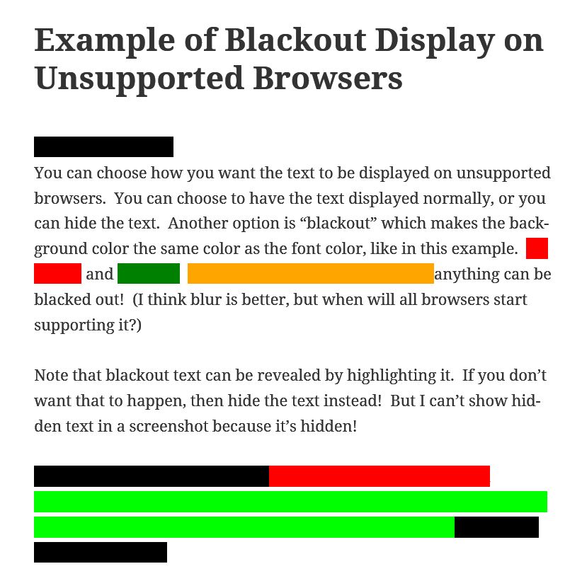 • An example of blackout text on unsupported browsers.