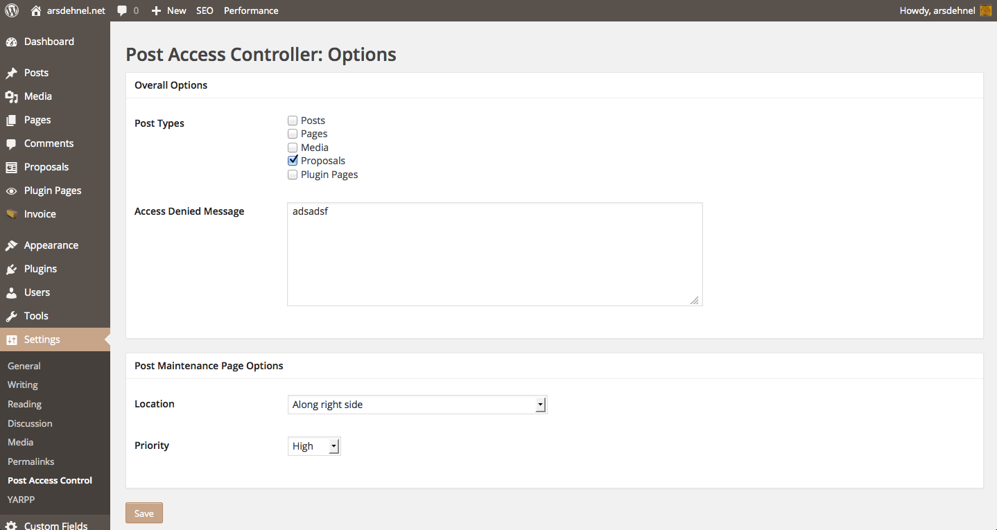 - Go to the Settings -> Post Access Controller page to get a few things setup and configured.