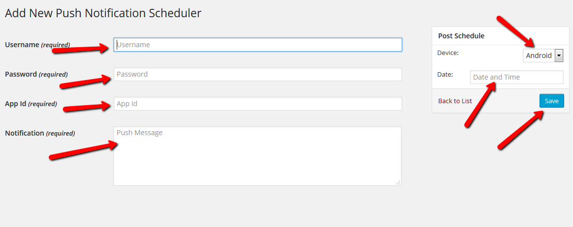 • Click ADD New for sending Push Notifications from your wordpres admin section