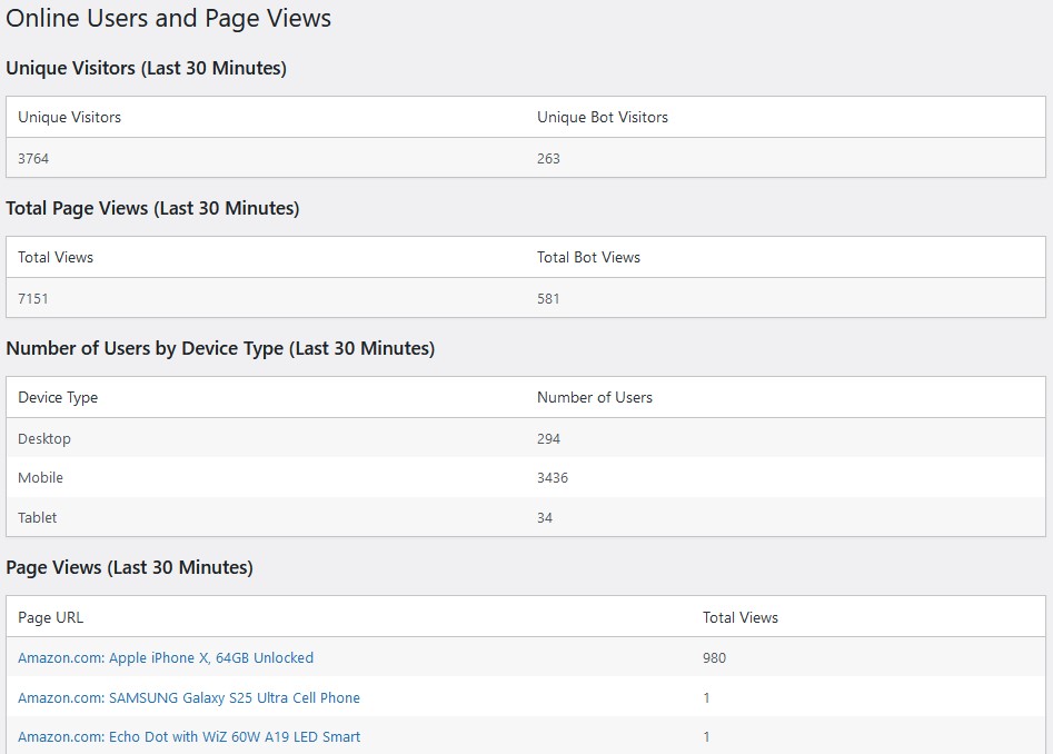 ✅ Live Online User Count – Track active users in the last 30 minutes.