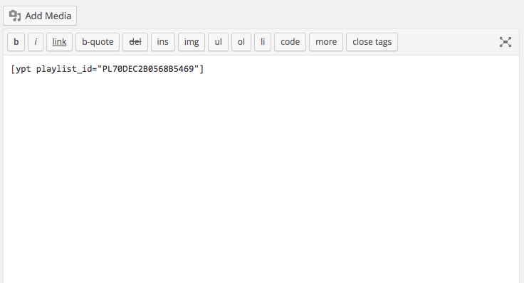 Place this shortcode in your posts or pages and insert your Youtube Playlist ID after the equal.