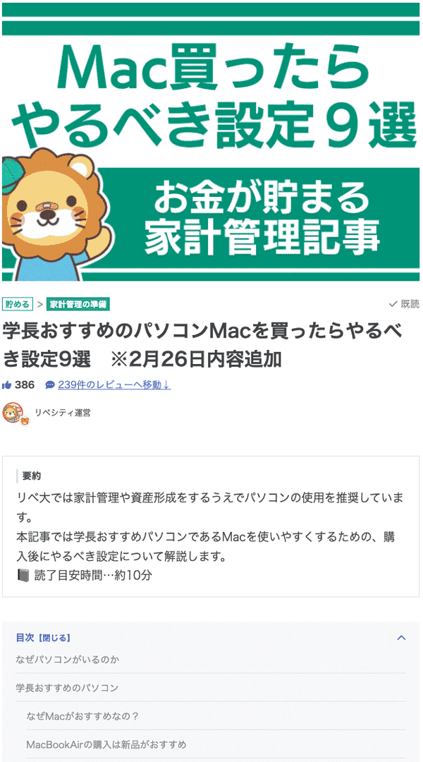 ブックマーク(お気に入り)して繰り返し読んだり、学びがあった記事にはレビュー(いいね)で投稿者に感謝を伝えたりすることもできます。
