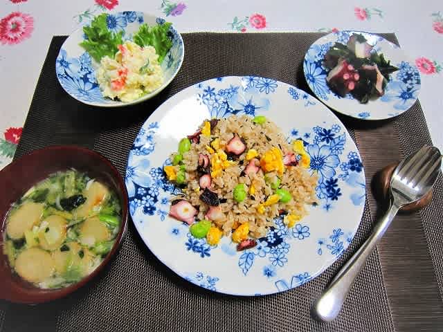 蛸ピラフ・お味噌汁・ポテトサラダ・酢の物