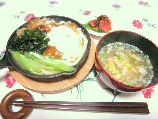 スキレット鍋うどん・お味噌汁・辛子明太子