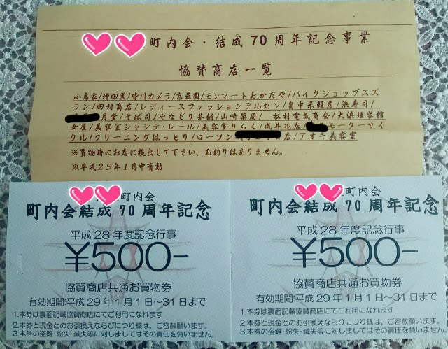各世帯へ 「70周年記念・買い物券」を お渡しすること