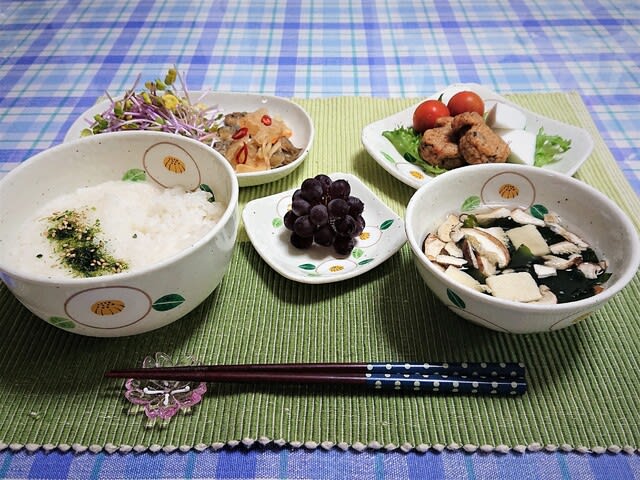とろろ丼・お吸物・小鯵の南蛮漬け・ひじき揚げ&はんぺん・デラウエア