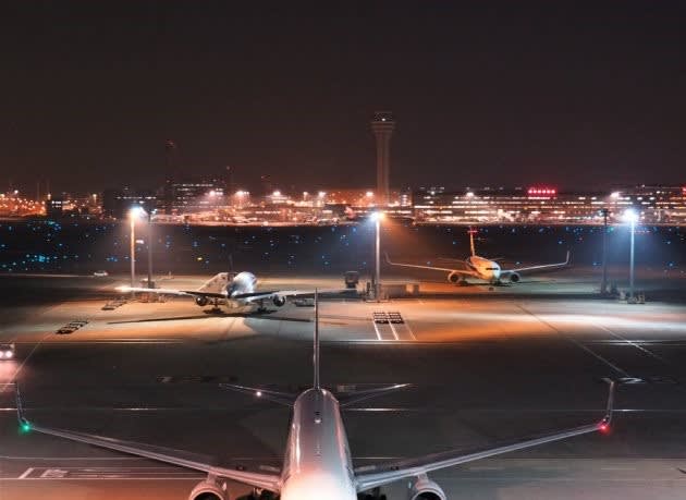 2018-12-14 夜のエアポート イルミネーション・ライトアップ 2018年12月14日 <母> 空港のイルミネーションは、それほど華やかではありませんが、 出会いと別れの場所がら、普段とは違う心動く場所です。 天井と床に光のアートが映し出されます。 国際線の展望デッキは、離発着が深夜でもあるため一晩中 開いているそうです。 出発の準備だろうか、眠らない飛行場。 海に潜む巨大な魚の様な黒い機体が動いていく。 さ、そろそろ帰りましょ。 帰りは、わが町まで来るエアポートバスに乗れば ぐっすり寝て帰れます。