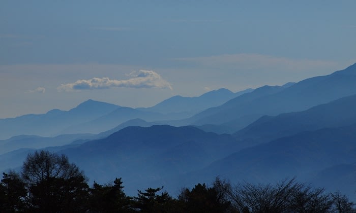 幾重もの山の重なりの濃淡の美しさ。
