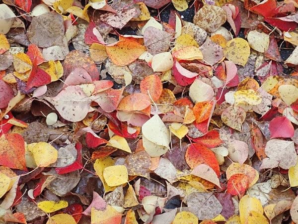 歩道一面がナンキンハゼのカラフルな落葉で覆われていました。