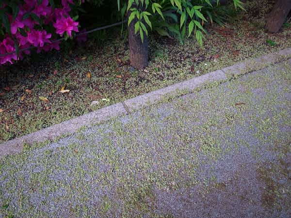 大きな桜の木の下を通ったら、歩道に薄緑色の粒々がたくさん落ちていました。