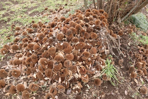 栗の木はたくさんあって、実が入ったまま木に残っているのも