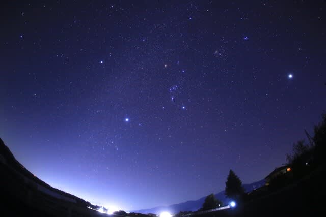 左上に輝くのは木星です。カシオペヤ座、北斗七星、北極星を探して下さい。