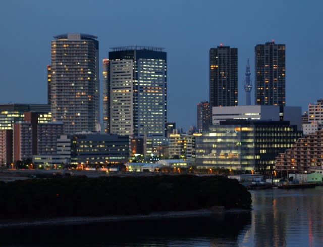 夜の帳がおりるとビルの窓々に灯りがともる。