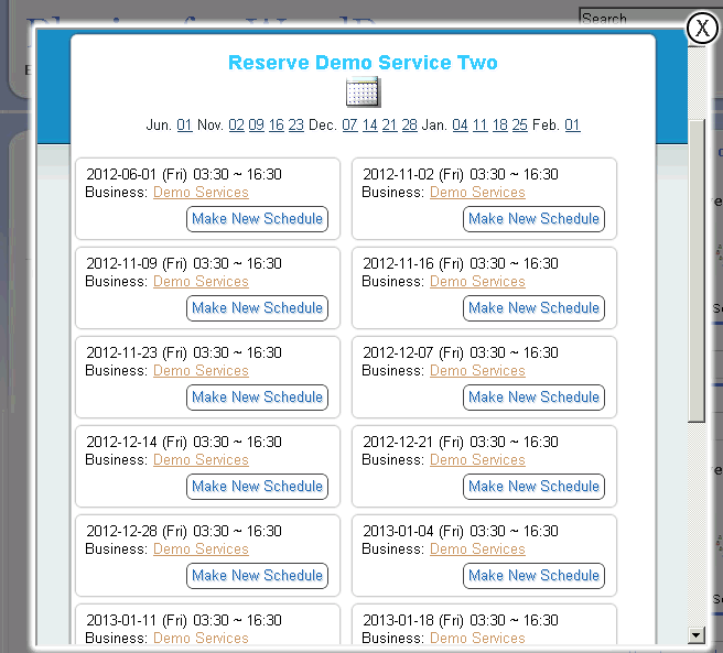 The backend is provided by Uniwits.com’s online reservation service (UORS) at http://reserv.uniwits.com . When using this plugin, you are publishing services that you create on UORS. Please to go UORS, register an account, and upgrade to business, for free, then follow the wizard to publish a service.