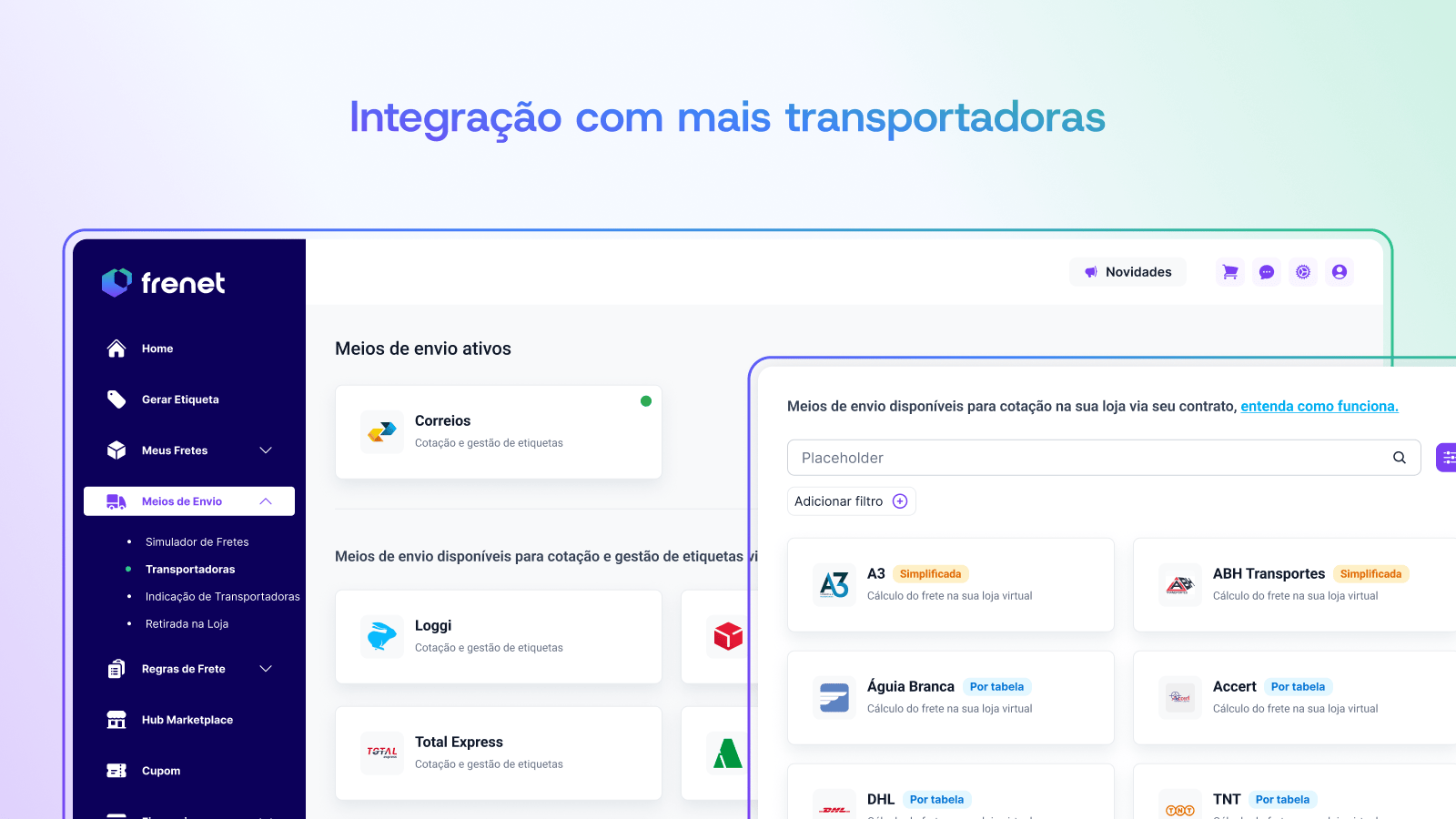 We are not a carrier. Frenet is a full-featured shipping platform that connects your store to the leading carriers in the market, automating rate calculation, label printing, tracking, and logistics management, all in one place, with a focus on performance, savings, and simplicity.Do I have to pay to use Frenet?