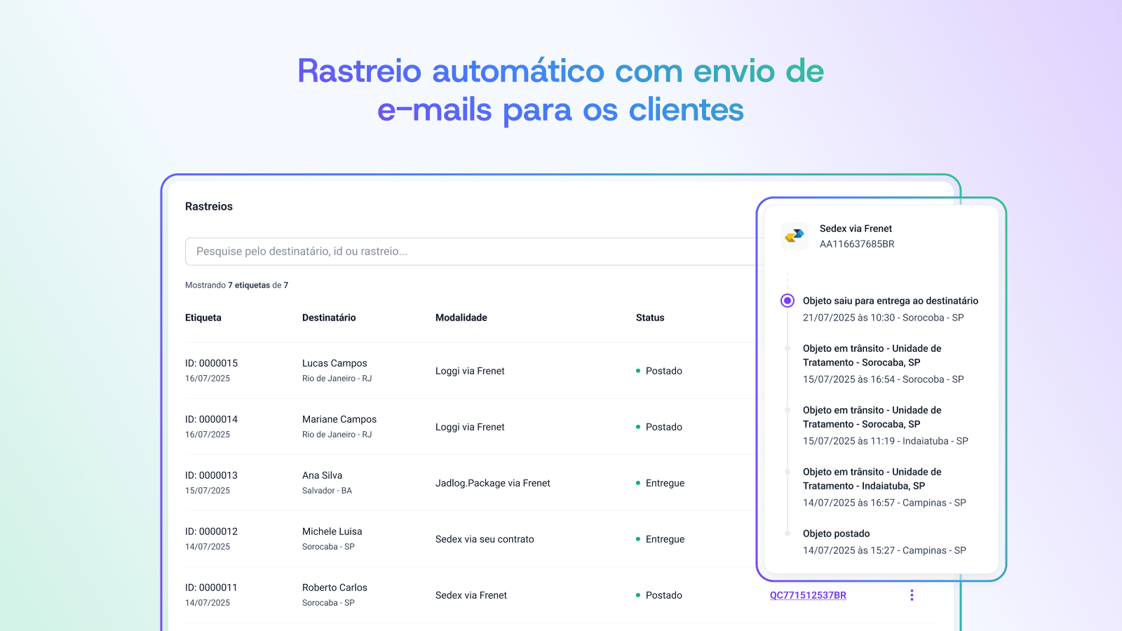 Rastreio automático com envio de e-mails para os clientes.