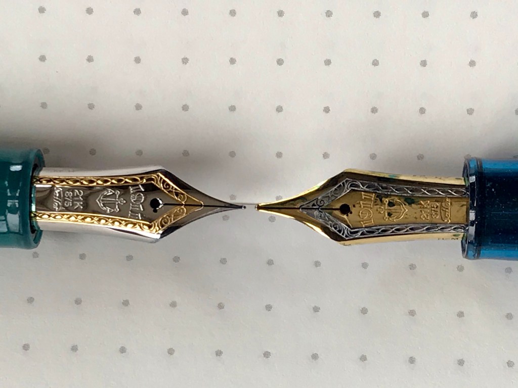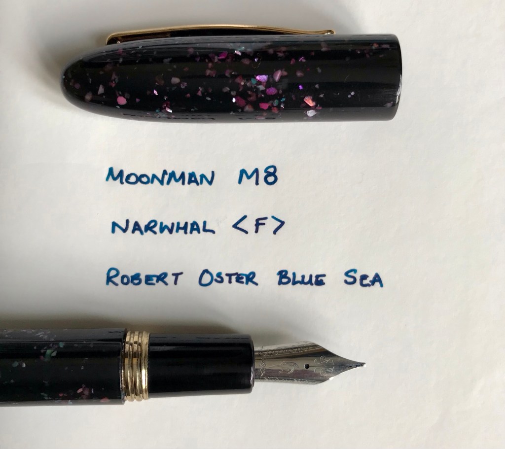When I was cleaning my Narwhal I was struck by how similar the nib unit looked to the Moonman one. A small experiment later and I was able to confirm that the Narwhal nib unit fitted the Moonman. I duly ordered two Narwhal nib units from Hamilton Pens and now both Moonmans (Moonmen?) are a) functional and b) nice to write with.
